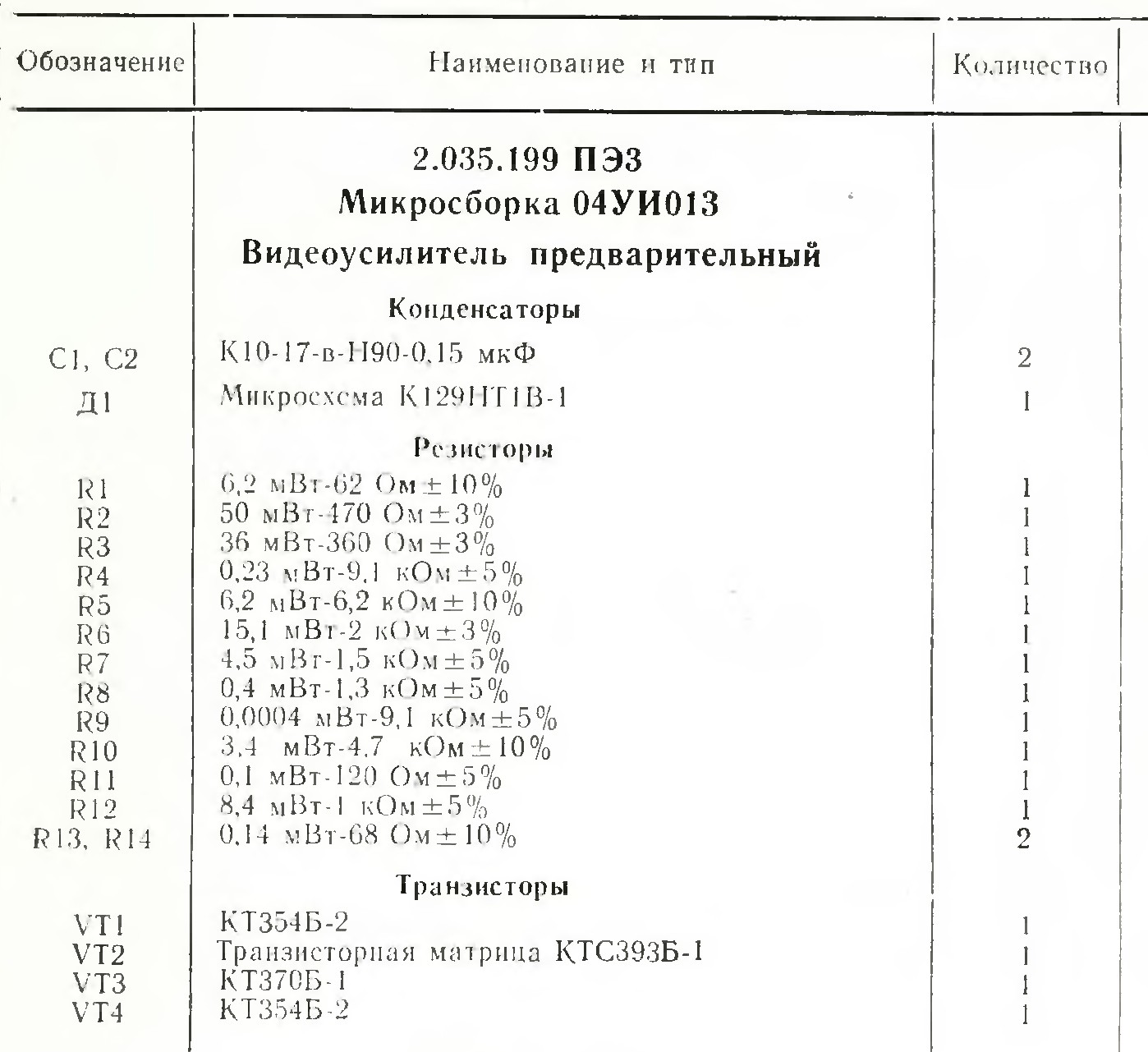 Назначение - предварительный видеоусилитель, применялась в камере телевизионной передающей КТП-82-1.