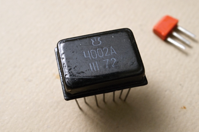 Возможно, это первые выпуски массовых (впоследствии) транзисторных сборок КТС613А. Производитель - минский "Транзистор".