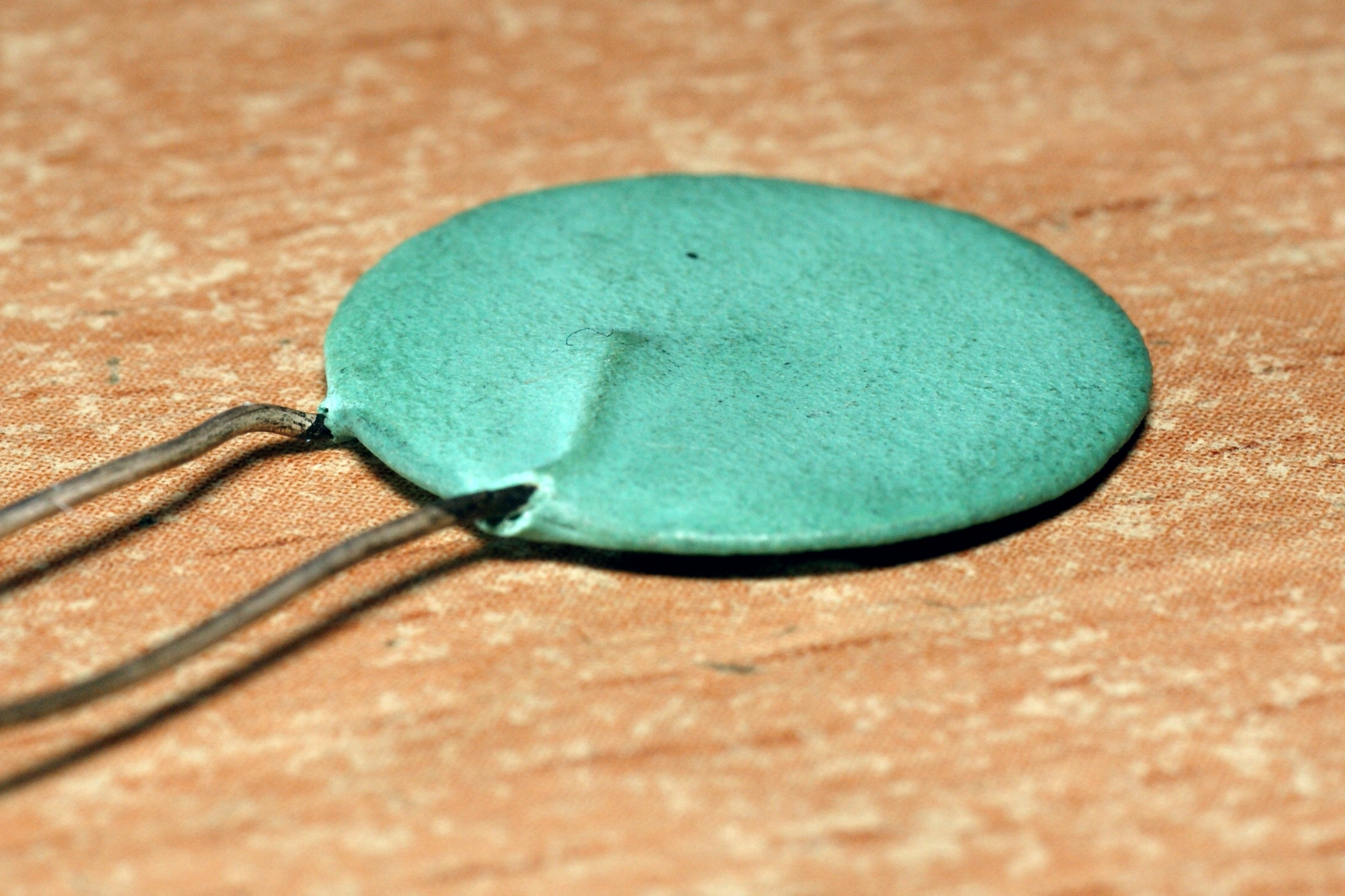 Такой конденсатор представляет собой керамический диск из сегнетокерамического материала на основе TiO2 или BaTiO3, который восстановлен в водороде до высокой электропроводности. После восстановления диск окисляется в воздушной среде и на его поверхности образуется тонкий диэлектрический слой исходного материала. На поверхность окисленной заготовки наносится серебряный электрод, к которому крепятся медные посеребренные выводы. Затем конденсатор покрывается компаундом.