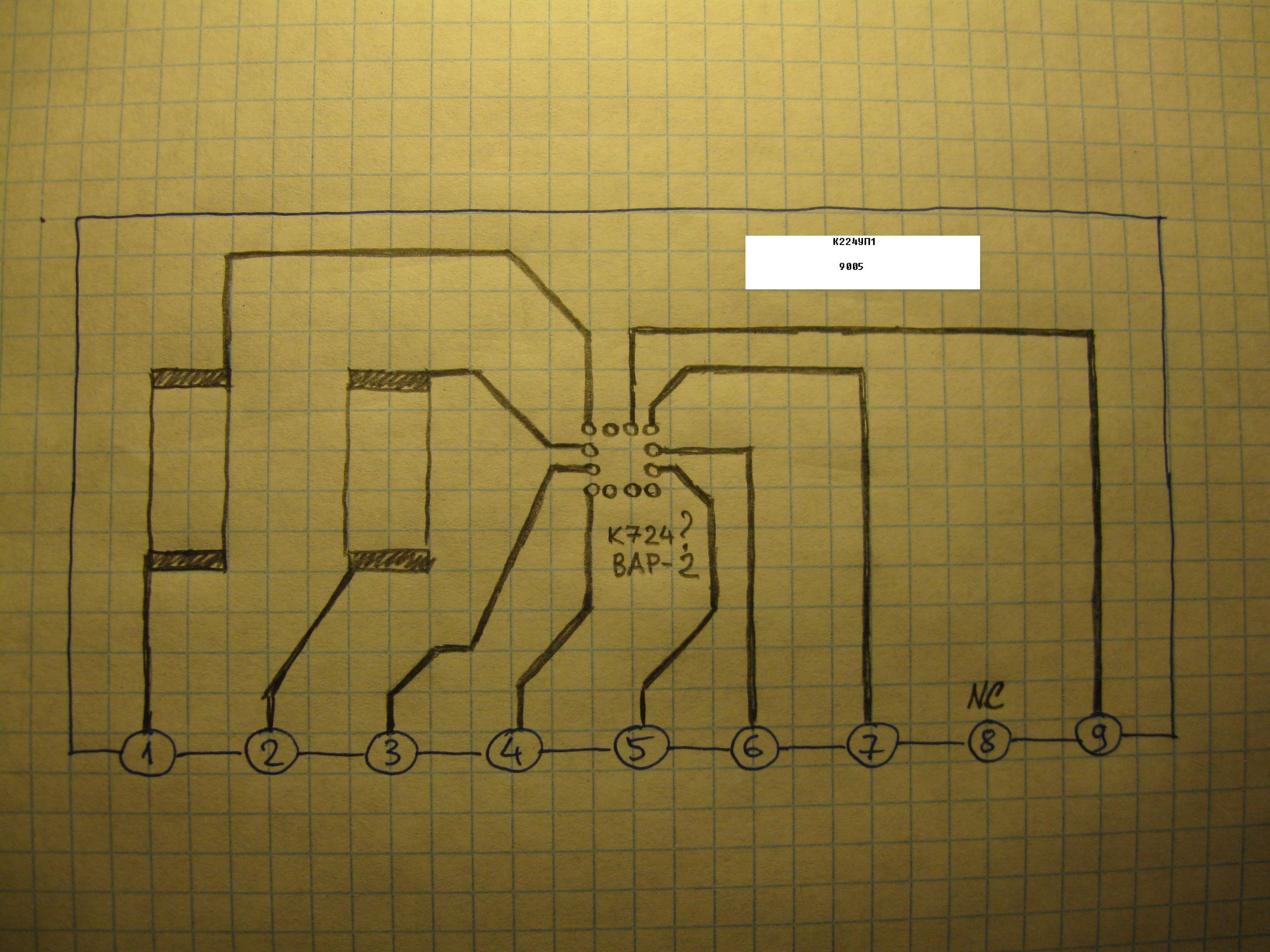 Она пережила примерно такую же эволюцию, как и К224УП1. Первые выпуски были выполнены на дискретных элементах - два транзистора и два диода. |