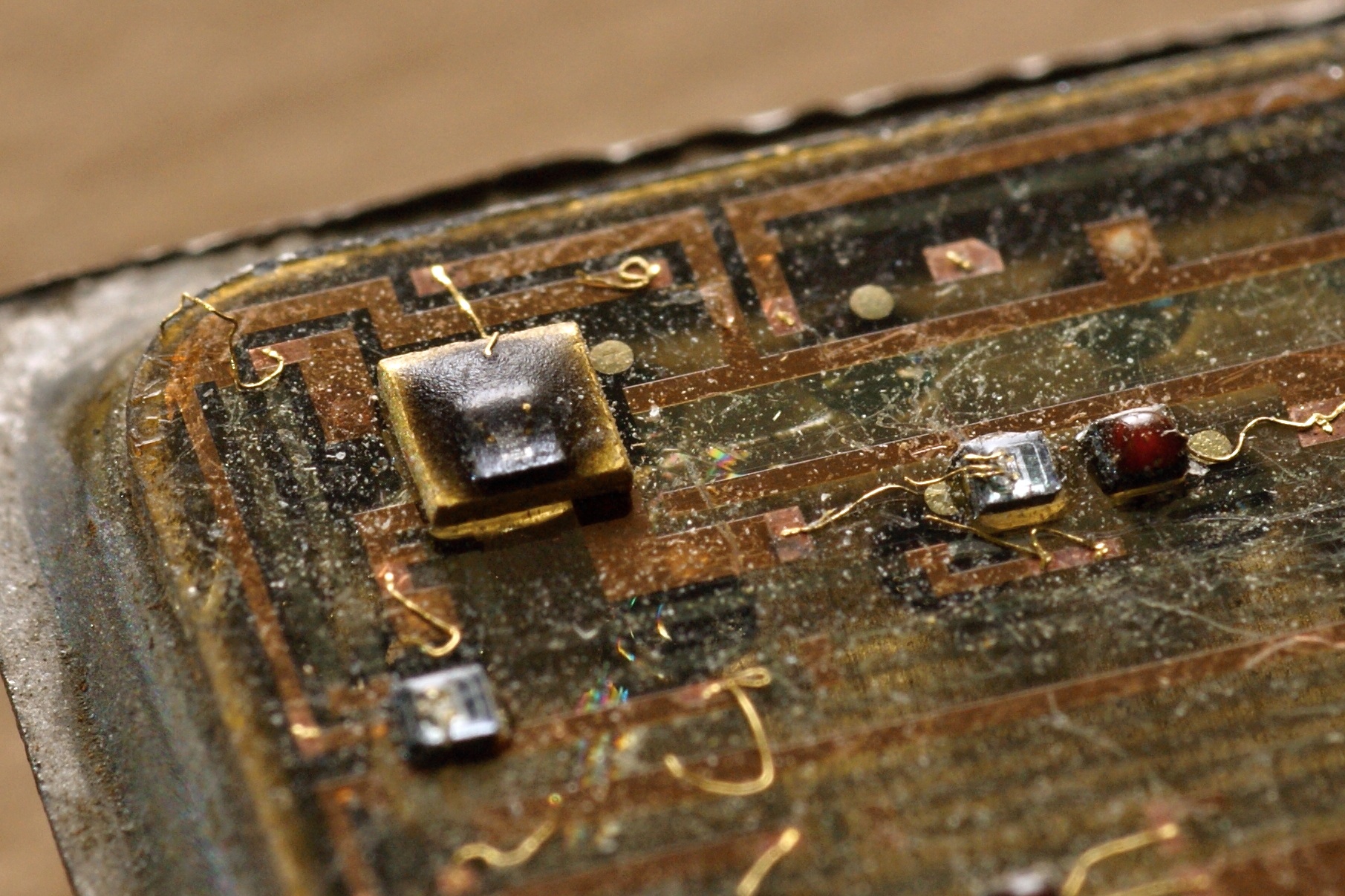 Любопытно, что в составе вскрытой микросхемы явно видны некие транзисторные сборки, тогда как в принципиальной схеме их нет!