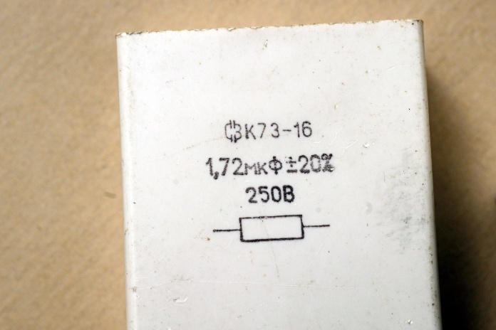 А вот очень странные конденсаторы из Северо-Задонска. Внешне как будто К73-16д, но вот беда, в справке не числится ни такого напряжения у них, ни такого номинала. 1,72 мкФ вообще как будто бы не бывает. Хотя вот он: