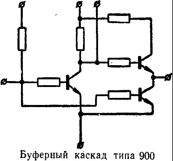 Буферный каскад типа 900 представляет собой инвертирующий промежуточный преобразователь с малым импедансом. Время распространения сигнала 16 нсек, выделяемая мощность 30
