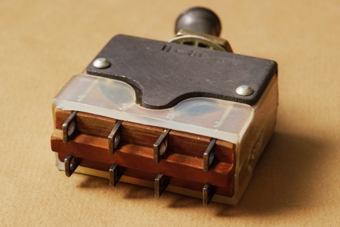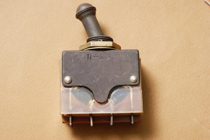 Тумблер, по внешнему виду совпадающий с известными ТВ1-4 - а также с более старыми ВБТ и ПР4-М - но выполненный по древней нормали 50-х годов.
