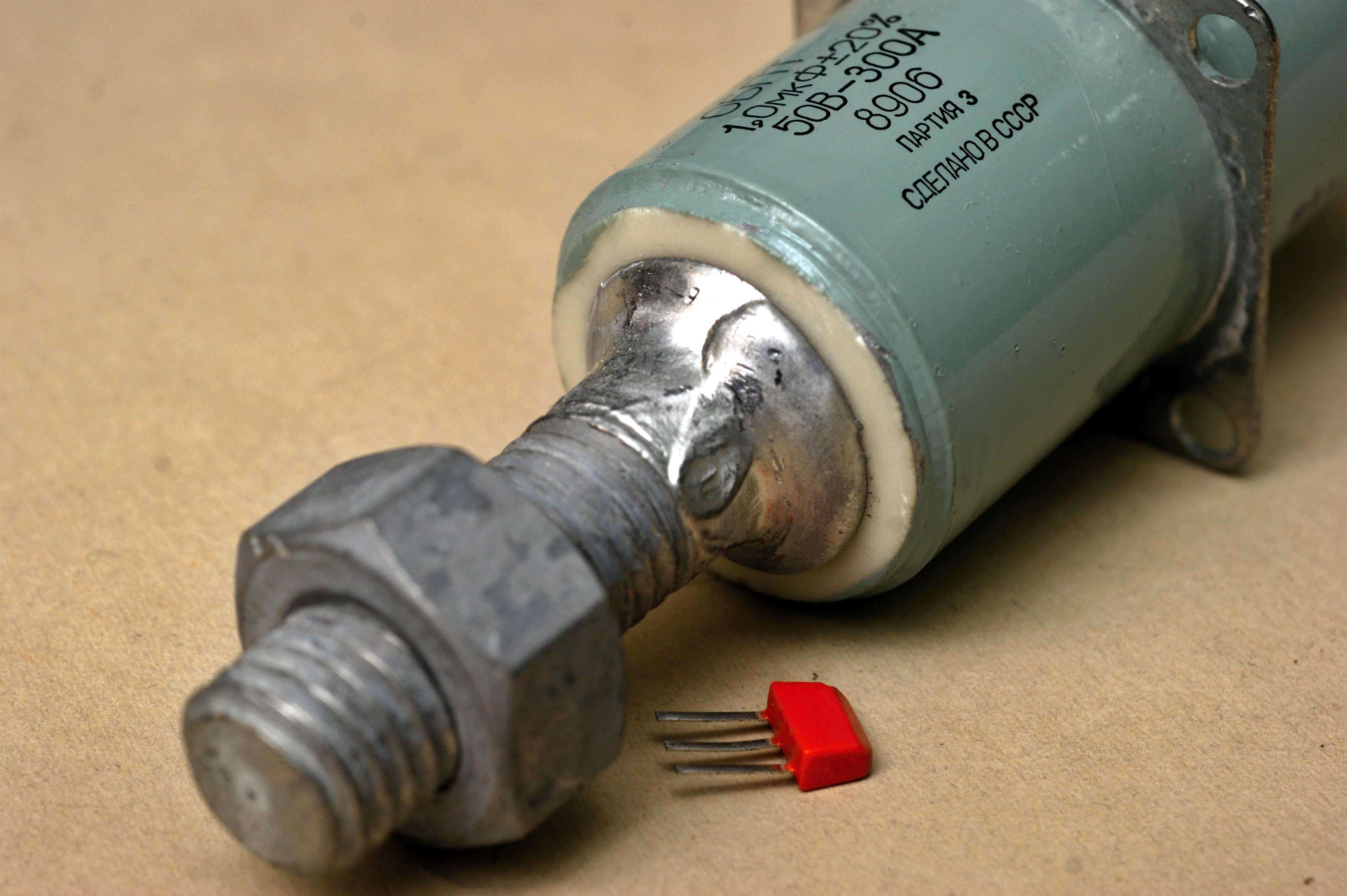 Если бы конденсатор с фото был лет на тридцать моложе, то в документации он назывался бы "ОБПТ-50-300-1 УП0.462.018ТУ специальный". Такую добавку "специальный" я, пожалуй, более ни у каких конденсаторов не встречал. Видимо, ОБПТ имел на то основания.