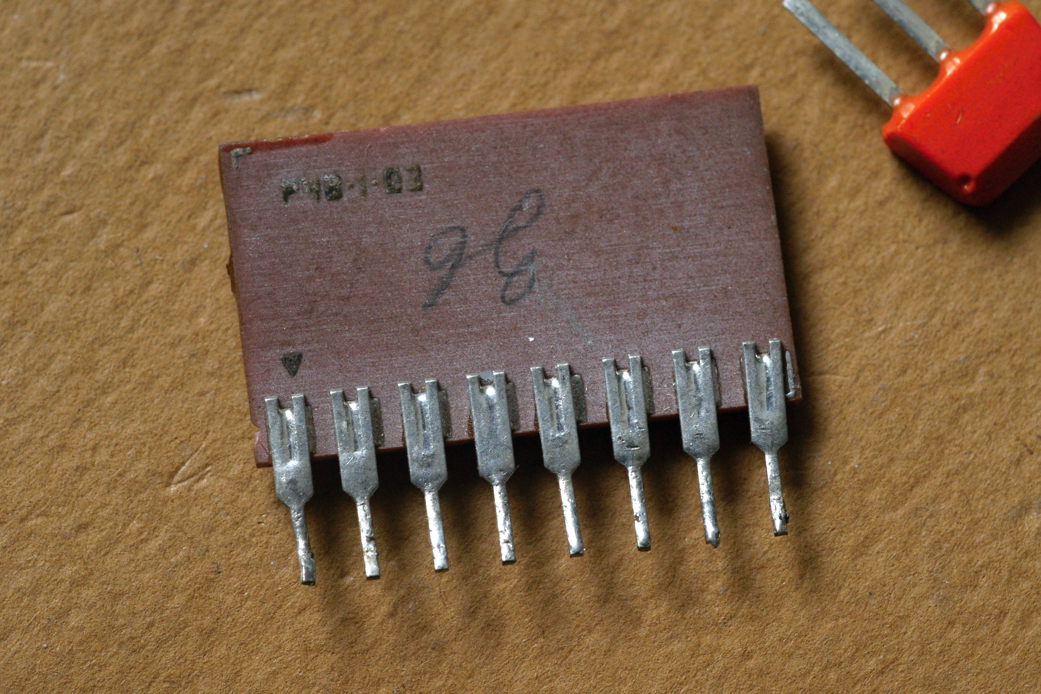 Микросборка применялась в автомагнитофоне ТОМЬ П-301С. Производитель неизвестен.