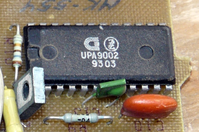 Схема приемника дистанционного управления телевизором. Микросхема подобна массовой КР1506ХЛ2, однако не является её копией. Она явно проще, управляется одной кнопкой.