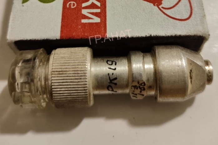 Старый высокочастотный разъём (по ЕЖ3.645.025ТУ), ответная часть к ГП-РК-19. Буквы "ВК" вероятно означают (В)илка (К)абельная, "РК-19" - марку кабеля (ныне ему примерно соответствует РК-50-2-13).