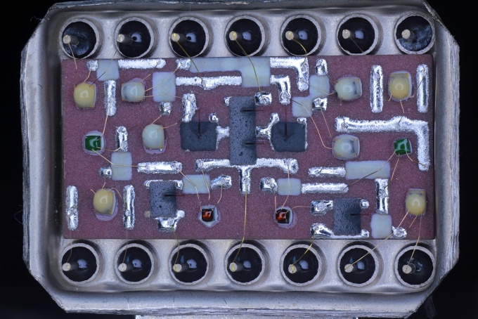 Паспорт от нее. Производитель - Минское ПО им. В. И. Ленина (Минский приборостроительный завод), ныне Белвар (Минск, Белоруссия). Микросборка состоит из двух дифференциальных каскодов –