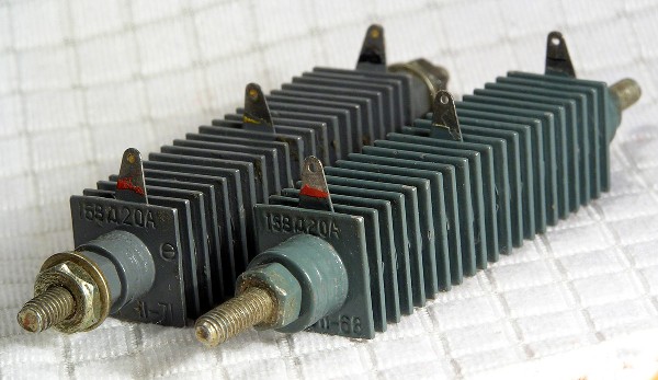 Селеновый двухплечный выпрямитель серии "А" класса "В", из элементов на алюминиевой основе. Подводимое напряжение 400 В, выпрямленное напряжение не менее 145 В, выпрямленный ток 40 мА.