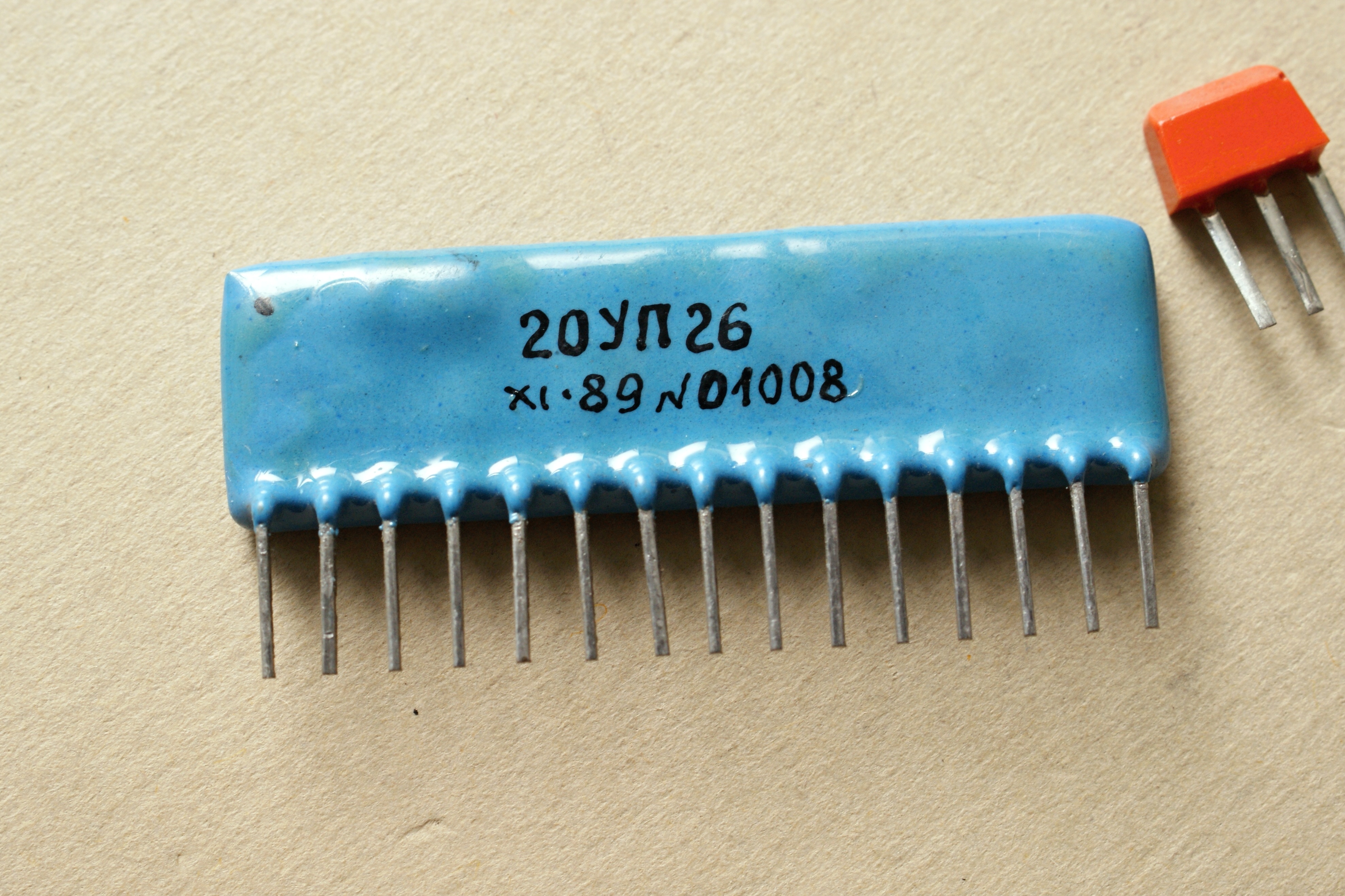 Применялась, к примеру, совместно с 20УП27 и 20УП28 в опытной плате видеопроцессора (60х60мм):