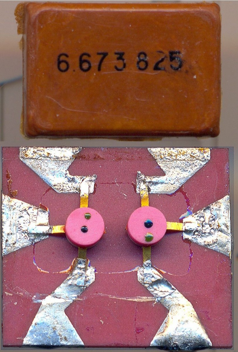 Микросборка из состава активного пробника для осциллографа С1-108. Представляет собой пару подобранных СВЧ транзисторов 2Т648А-2, с дополнительным внешним резистором.