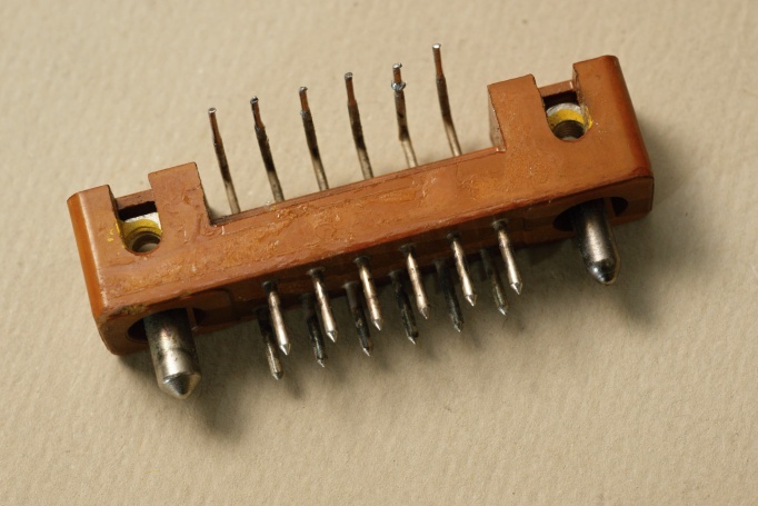Любопытный разъем частного применения, вилка на шесть контактов для печатного монтажа.
