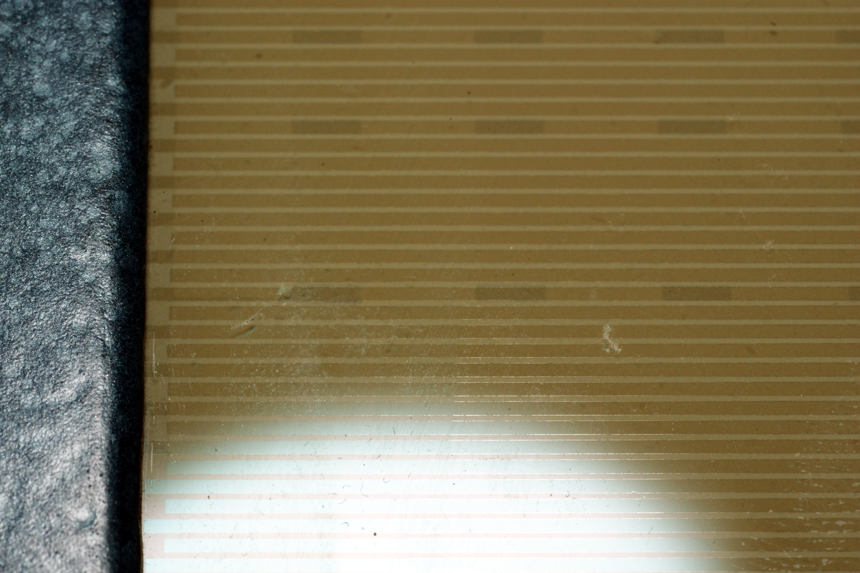 Сам по себе индикатор довольно прост. Он представляет собой просто панель из 130 (?) светящихся полосок. Цвет свечения, судя по накладываемому светофильтру - зелёный.