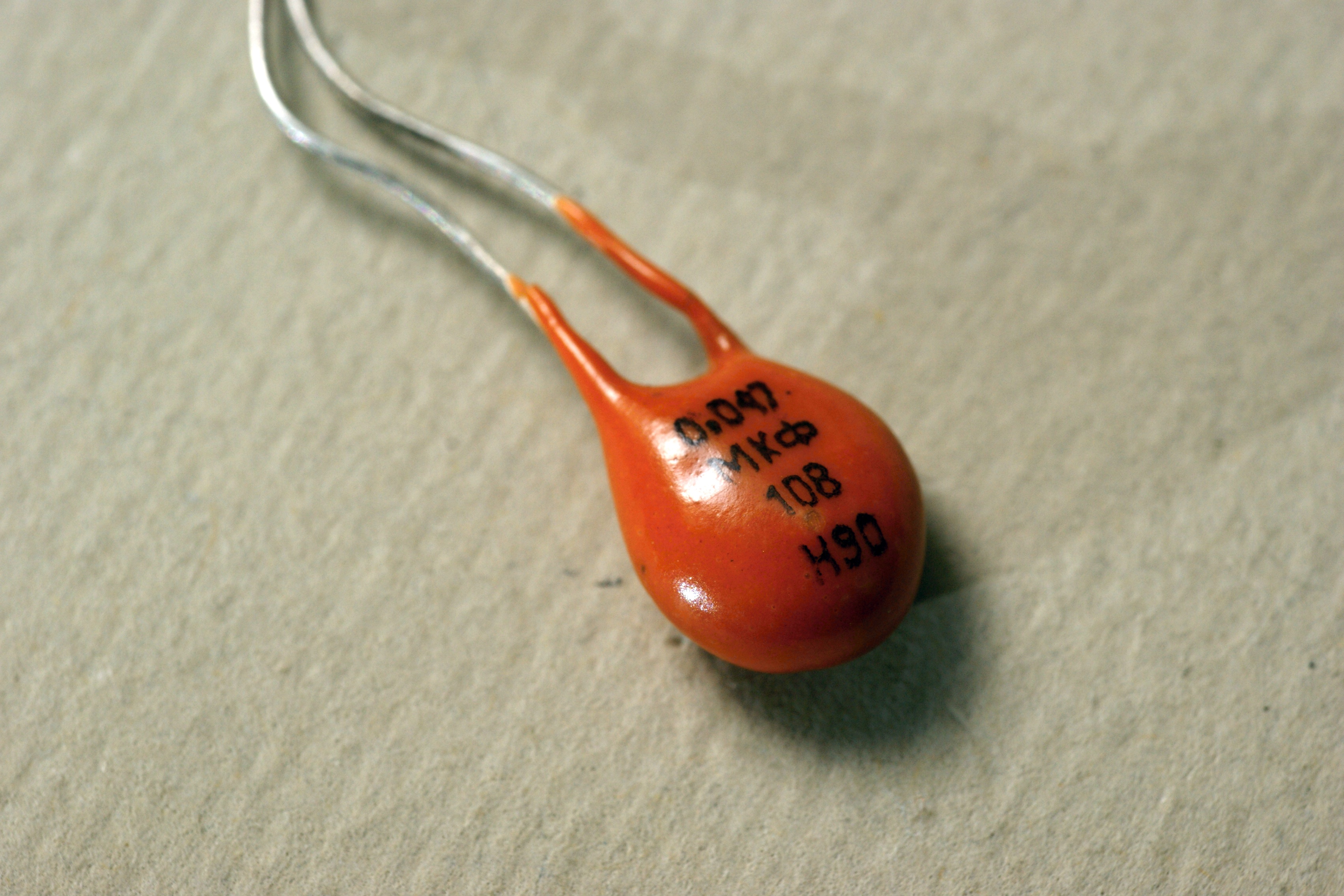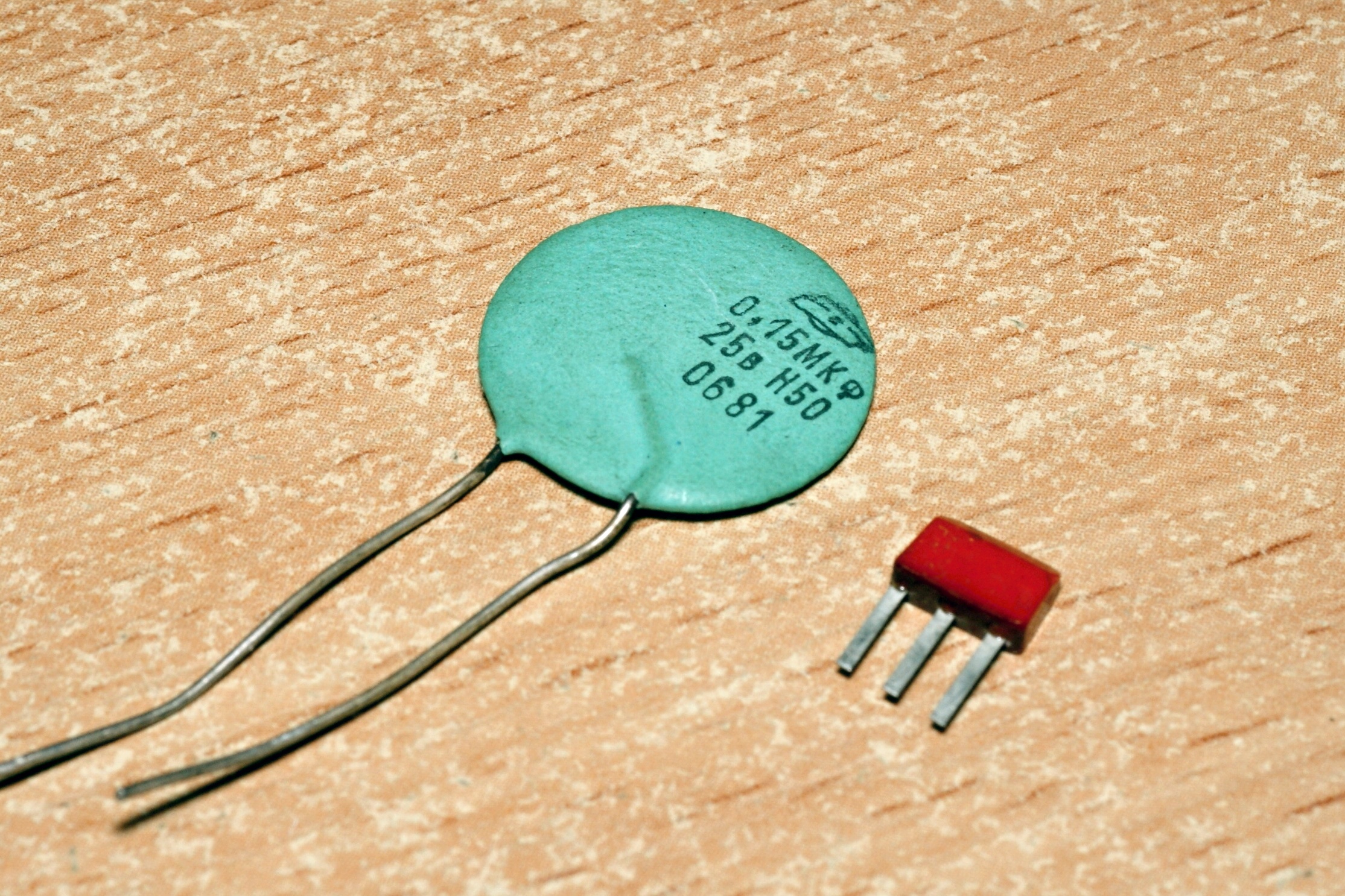 А вот очень интересный экземпляр. Внешне - чисто копия известных конденсаторов КМ-6.