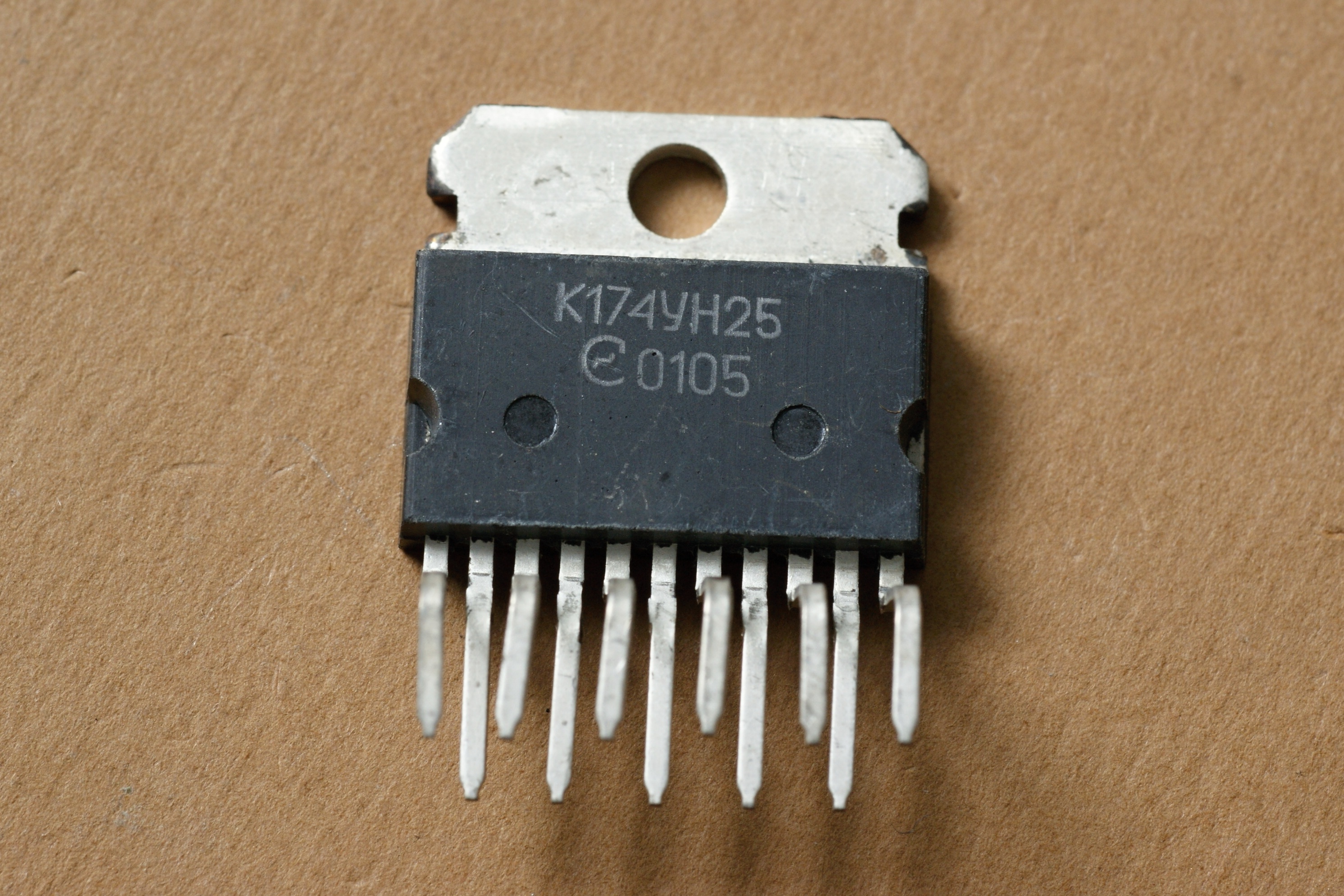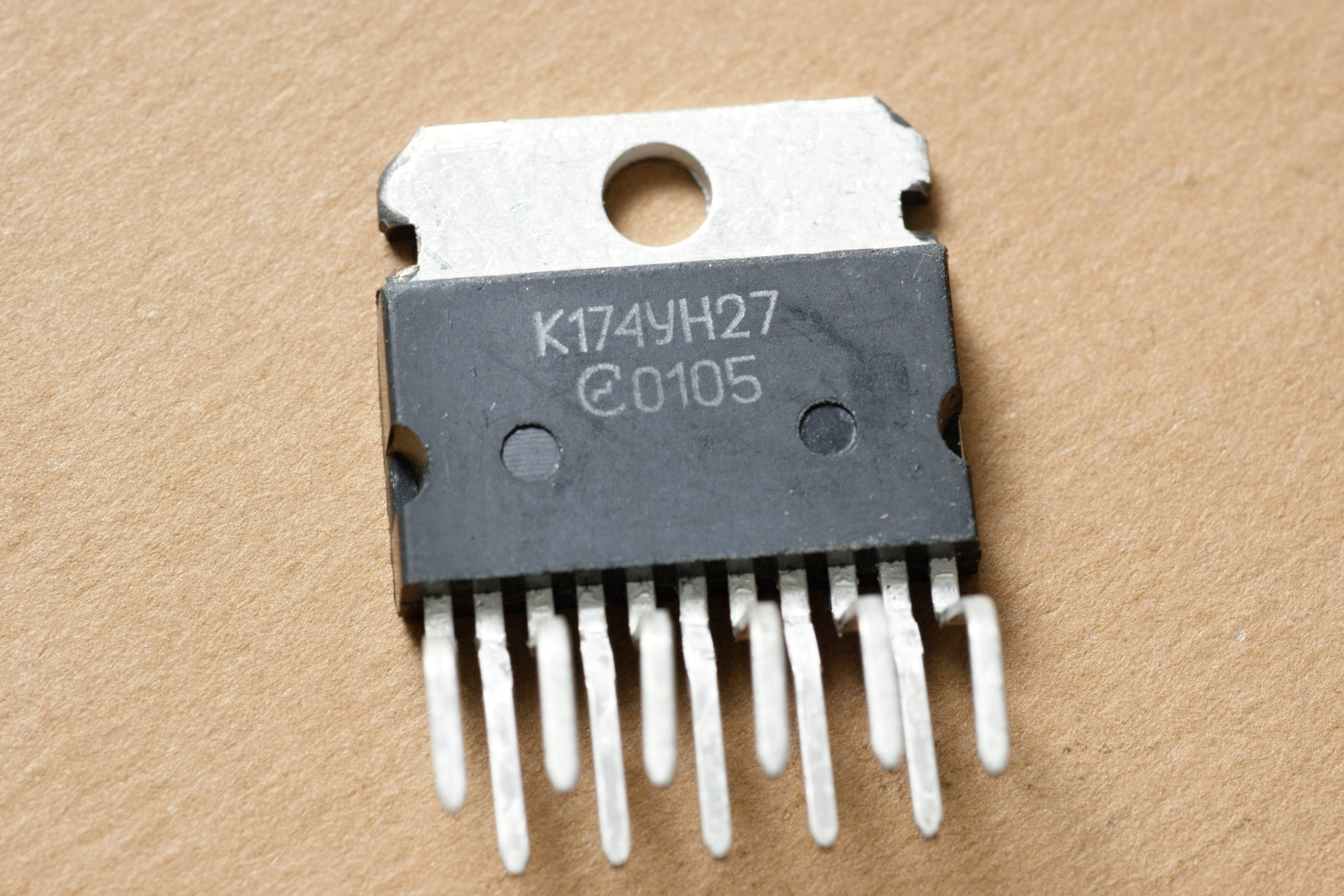 Копия очень массовой микросхемы УНЧ TDA2005. Как и своя "сестра" К174УН25, она вчистую проиграла рынок импорту и сейчас представляет собой настоящий раритет, к тому же её практически нет и справочниках.