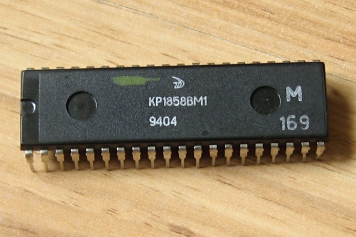 Я полагал, что этот процессор выпускал только "Ангстрем", но вот пара "странных" микросхем - одна украинская, "квазаровская", вторая вообще без маркировки производителя (и без буквы "К", кстати)... По виду корпуса и особенностям маркировки она похожа на микроновские, но в точности сказать невозможно.