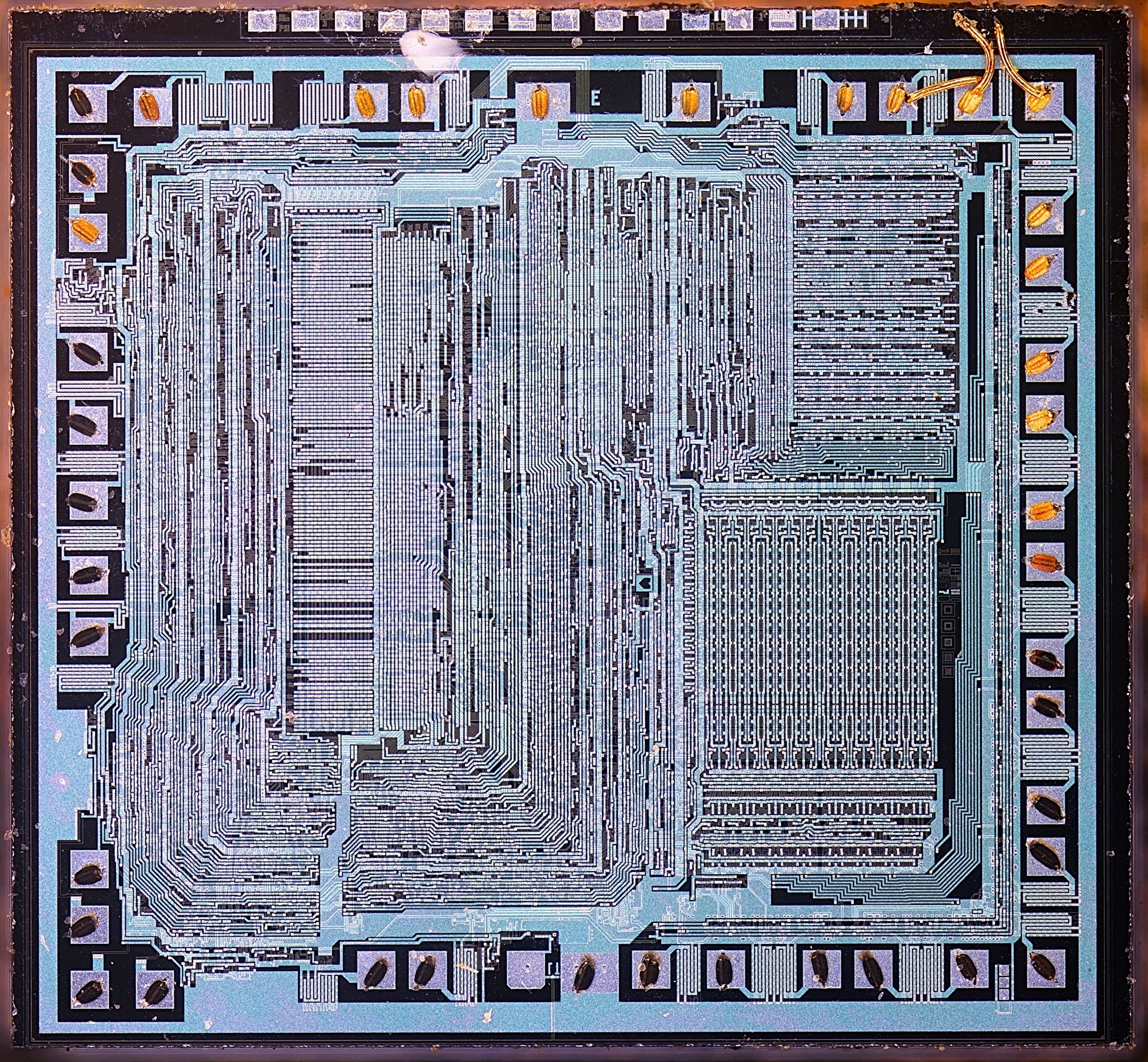 (фото из статьи Гик порн 3: Как «открыть» микросхему и что у неё внутри? Советские Z80, TTL логика, FPGA Altera Cyclone I и другие)
