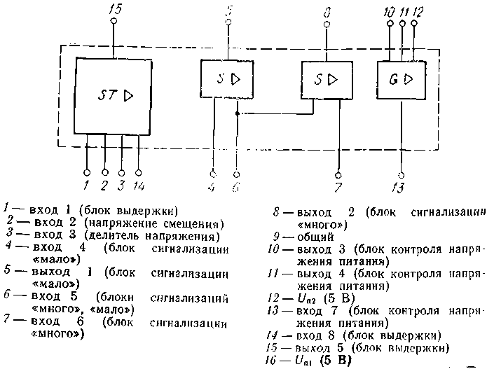 Крайне редкая нынче микросхема, которая представляет собой схему регулируемой задержки. Содержит 54 интегральных элемента; справочный листок на неё.