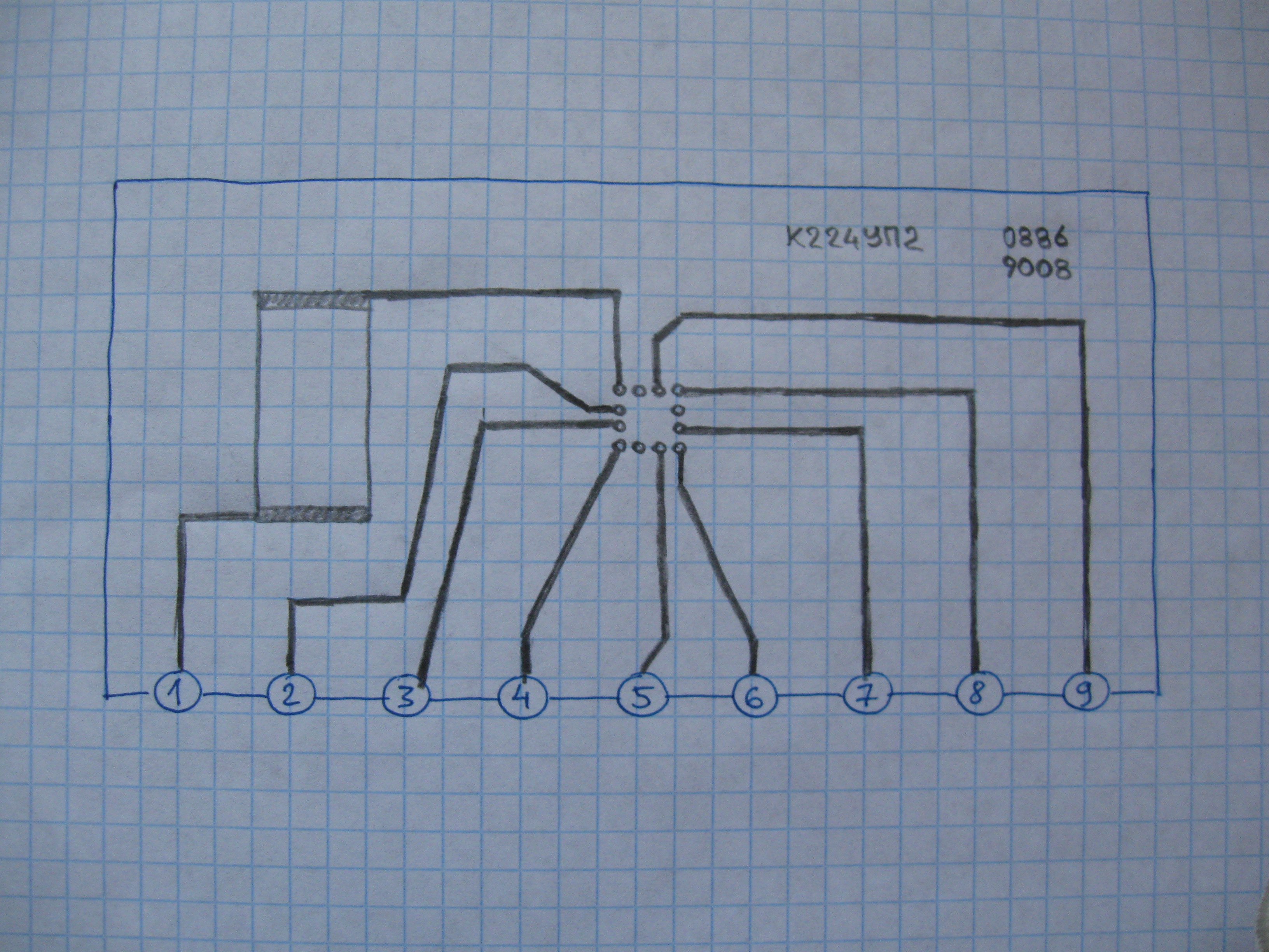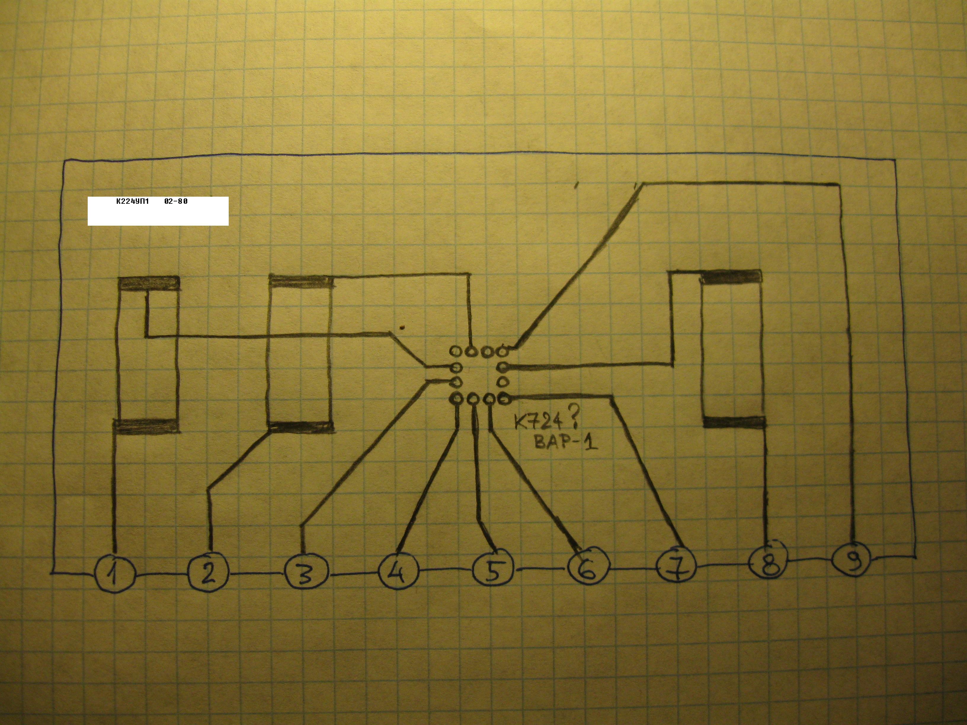 Она пережила примерно такую же эволюцию, как и К224УП1. Первые выпуски были выполнены на дискретных элементах - два транзистора и два диода. |