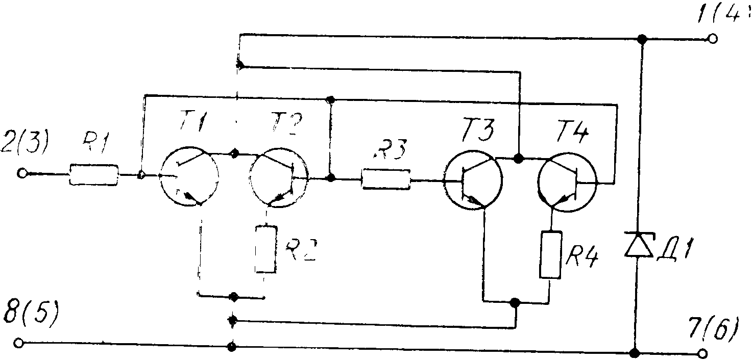 Надо сказать, что в справочниках описание этой микросхемы, как правило, приводится довольно невнятное. Вот, к примеру, электрическая схема из каталога 1981 года: