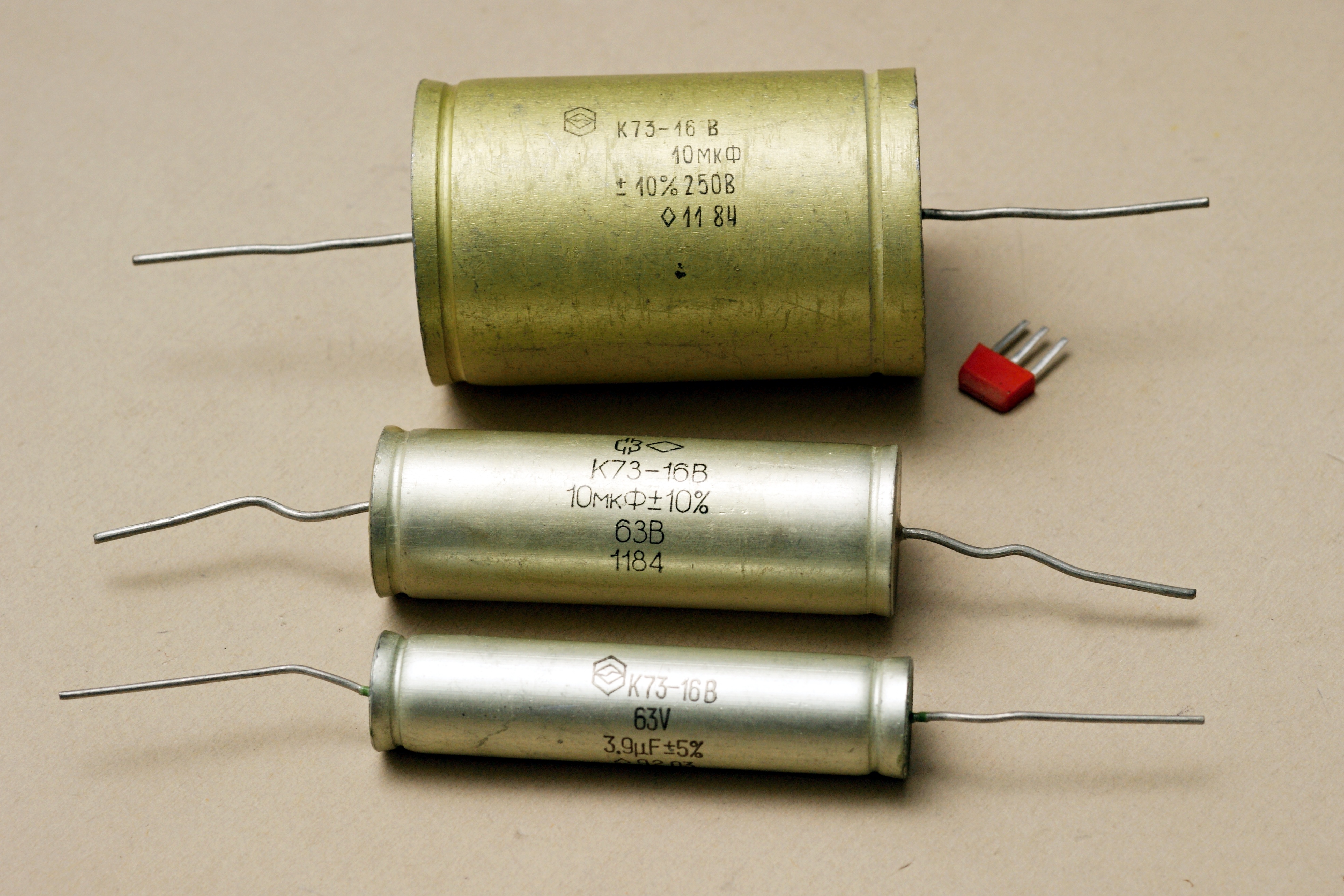 Единственный номинал в таком исполнении, на 160В/2,2мкФ. От стандартных К73-16 отличается тем, что у него нет металлического корпуса, конденсатор просто окукленный.