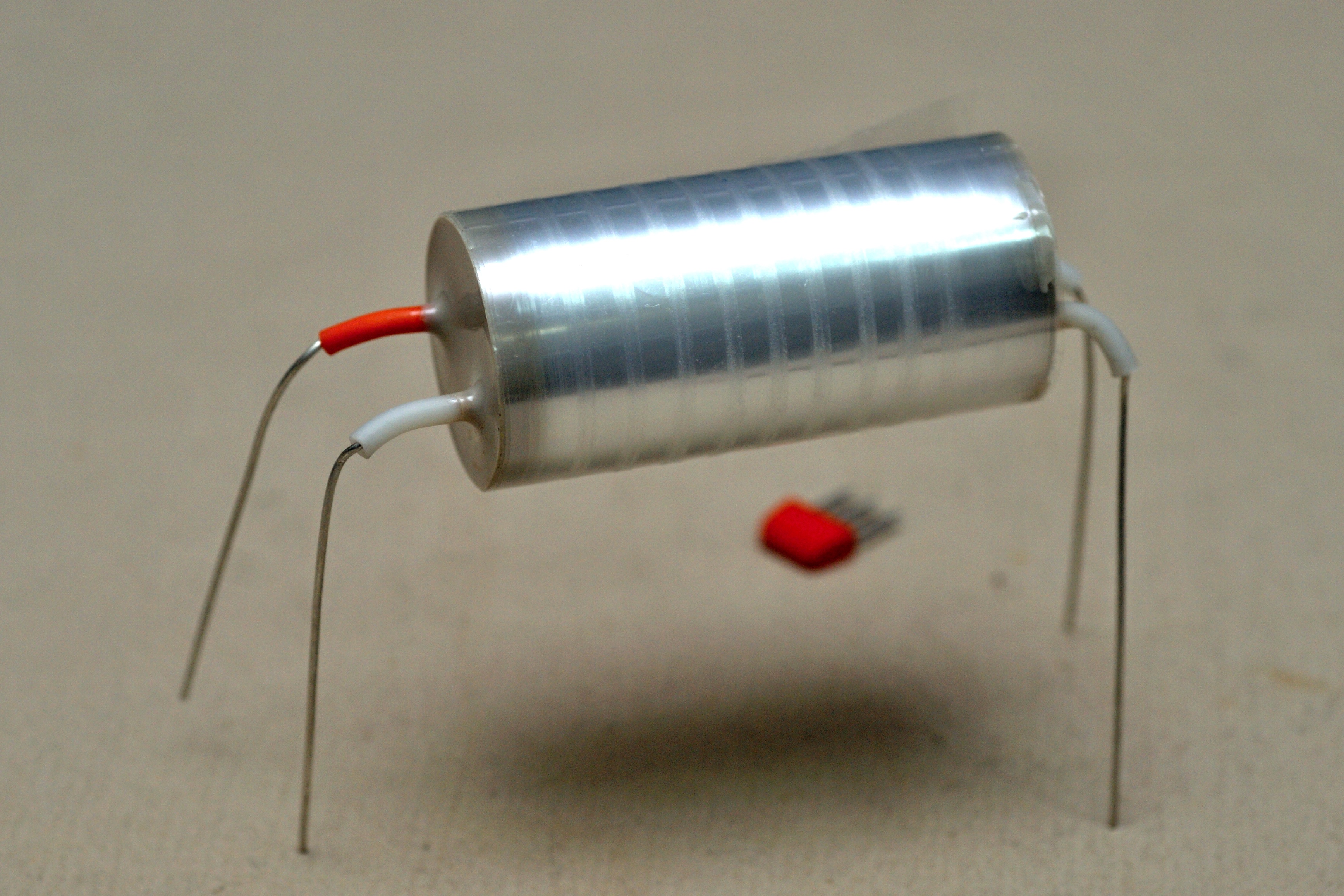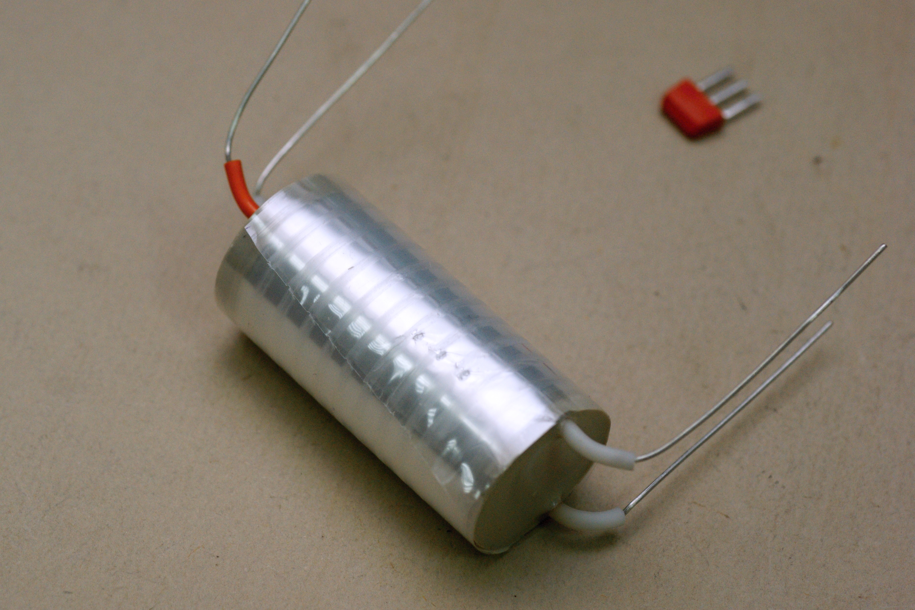 Необычный полиэтилентерефталатный конденсатор, из послесоветских разработок. Хотя он выпускается и поныне, но весьма редок.