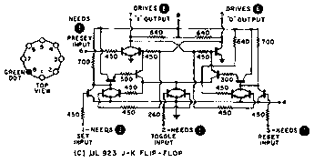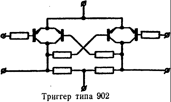 Триггер типа 902 служит в качестве двоичной ячейки памяти. Время срабатывания 14 нсек, рассеиваемая мощность 22