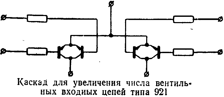 Каскад типа 921 представляет собой двойной вентиль на два входа без активных сопротивлений в узлах. Время прохождения сигнала через каскад 40 нсек.