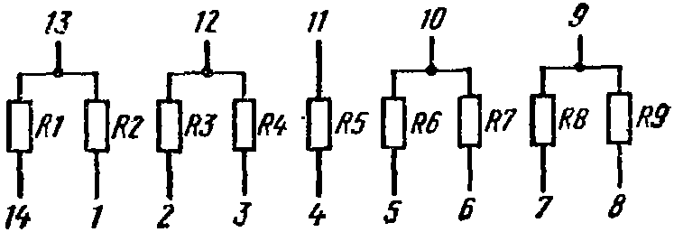 В НР1-16 восемь резисторов номиналом 47 кОм и один 4,7 кОм. И нет, этот один - не тот, который отдельный, а в составе делителя (R9). Какой-то странный набор получается...