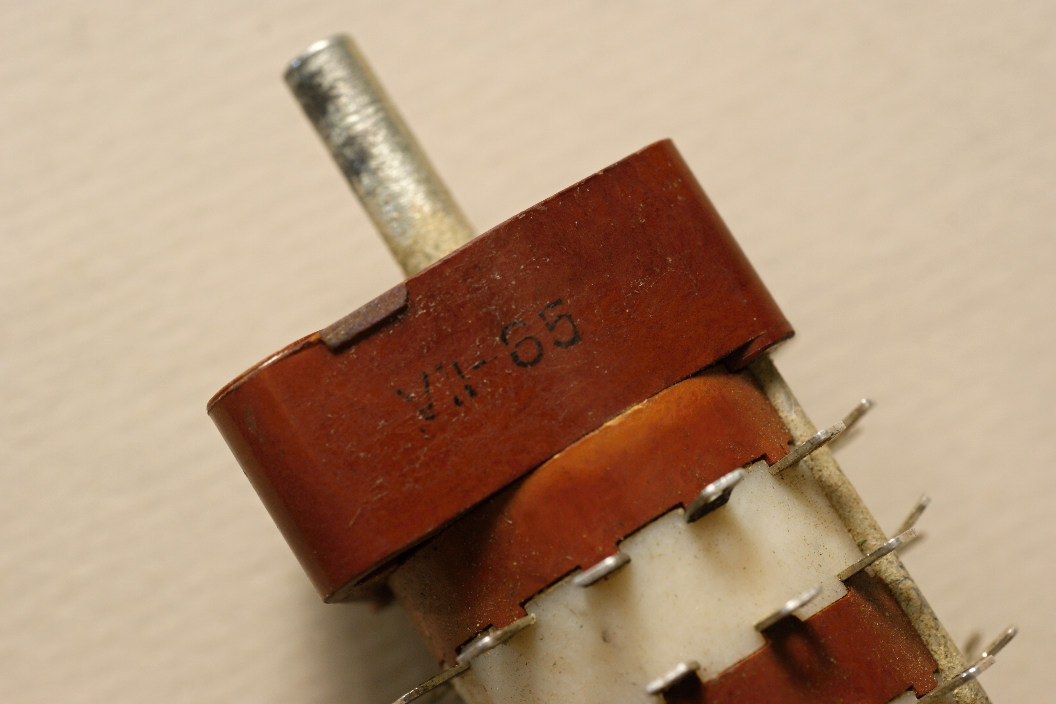 Галетные переключатели П2Г-3 вполне себе известны и выпускаются поныне. А вот второй и первый их варианты чрезвычайно редки, ибо быстро были сняты с производства в пользу более совершенной модели.