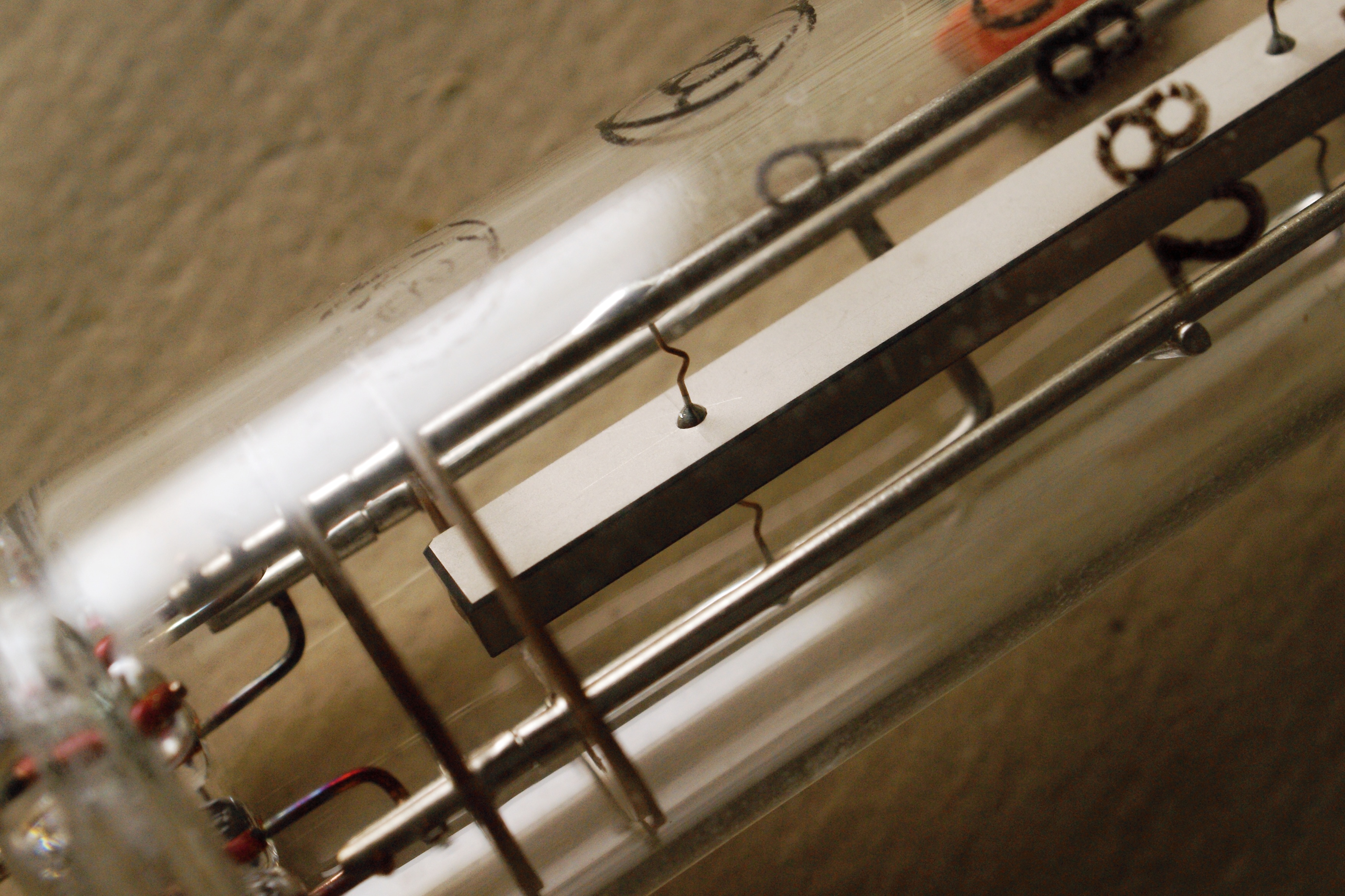 Интересно, что выводы его выполнены стеклянными гермовводами, хотя сам объём не герметизирован.