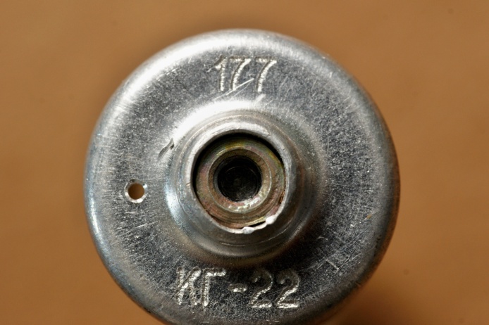 Назначение металлического "набалдашника" пока не вполне понятно. Скорее всего, как ключ - для демонтирования специнструментом, наподобие массовых радиоламп ГУ-50.
