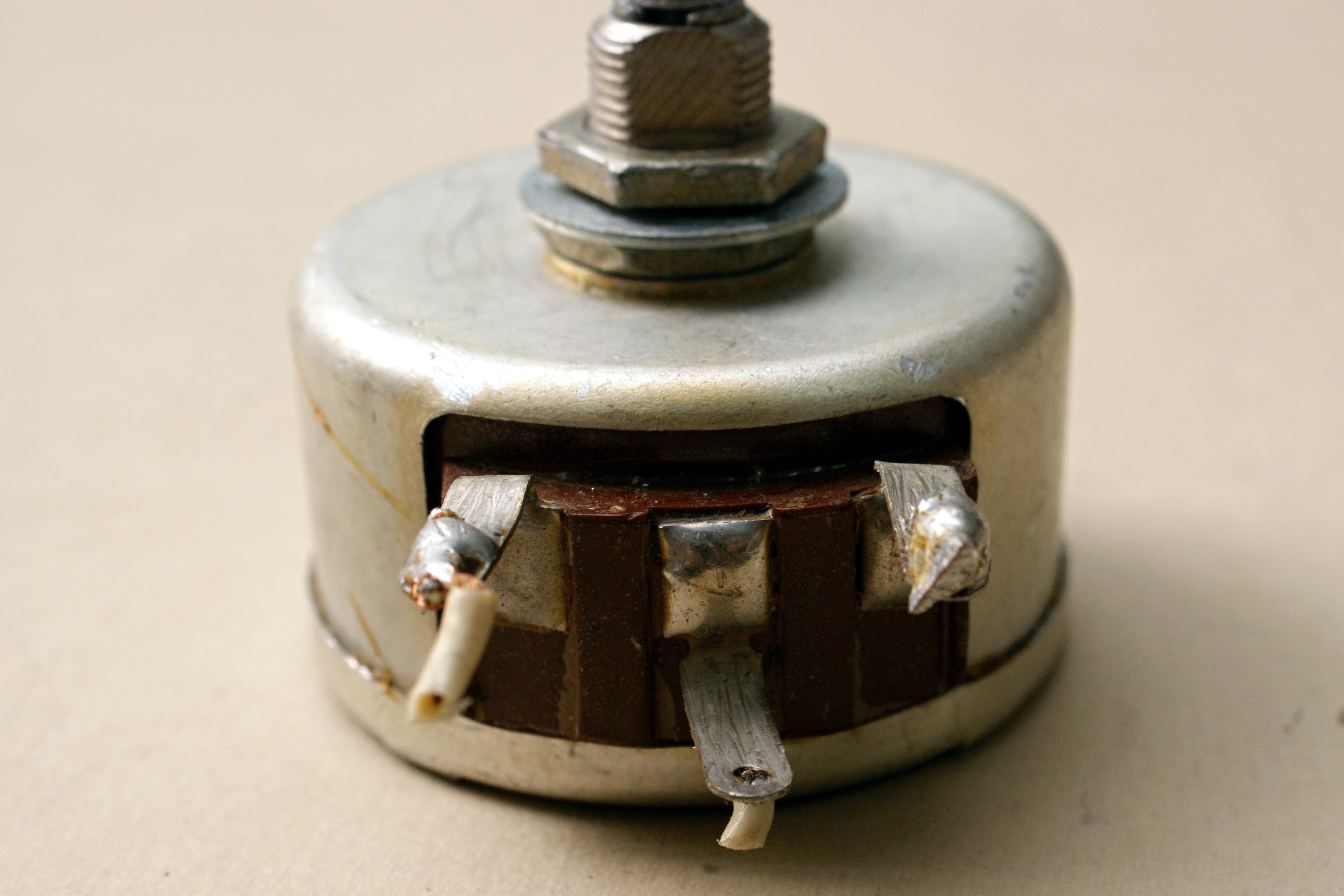 В принципе, для тех лет это была типовая конструкция, подобных резисторов весьма много. См. к примеру ПП3-4 или неизвестный 26. Однако если приглядываться к деталям, то видно, что крепление крышки, выводной узел и т.п. у них отличаются.