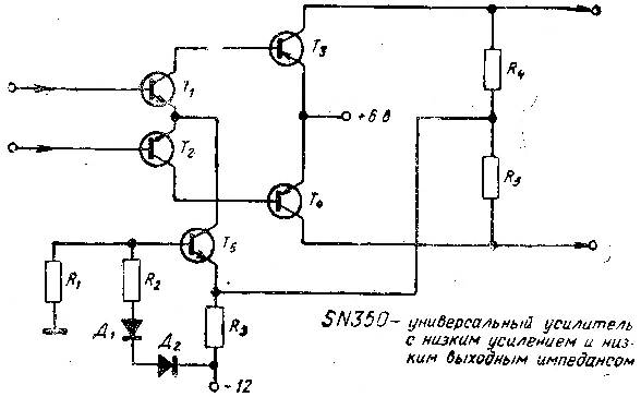 Двойной возбудитель вывода SN346 содержит два независимых импульсных усилителя, имеющих выходной каскад на транзисторах типа p-n-p и n-p-n. Благодаря этому время нарастания и время спада выходного сигнала между уровнями +6 в и—12 в равняются 1 мксек при нагрузке 2 ком, шунтированной емкостью 1000 пф. Без емкости они равны 0,2 мксек.