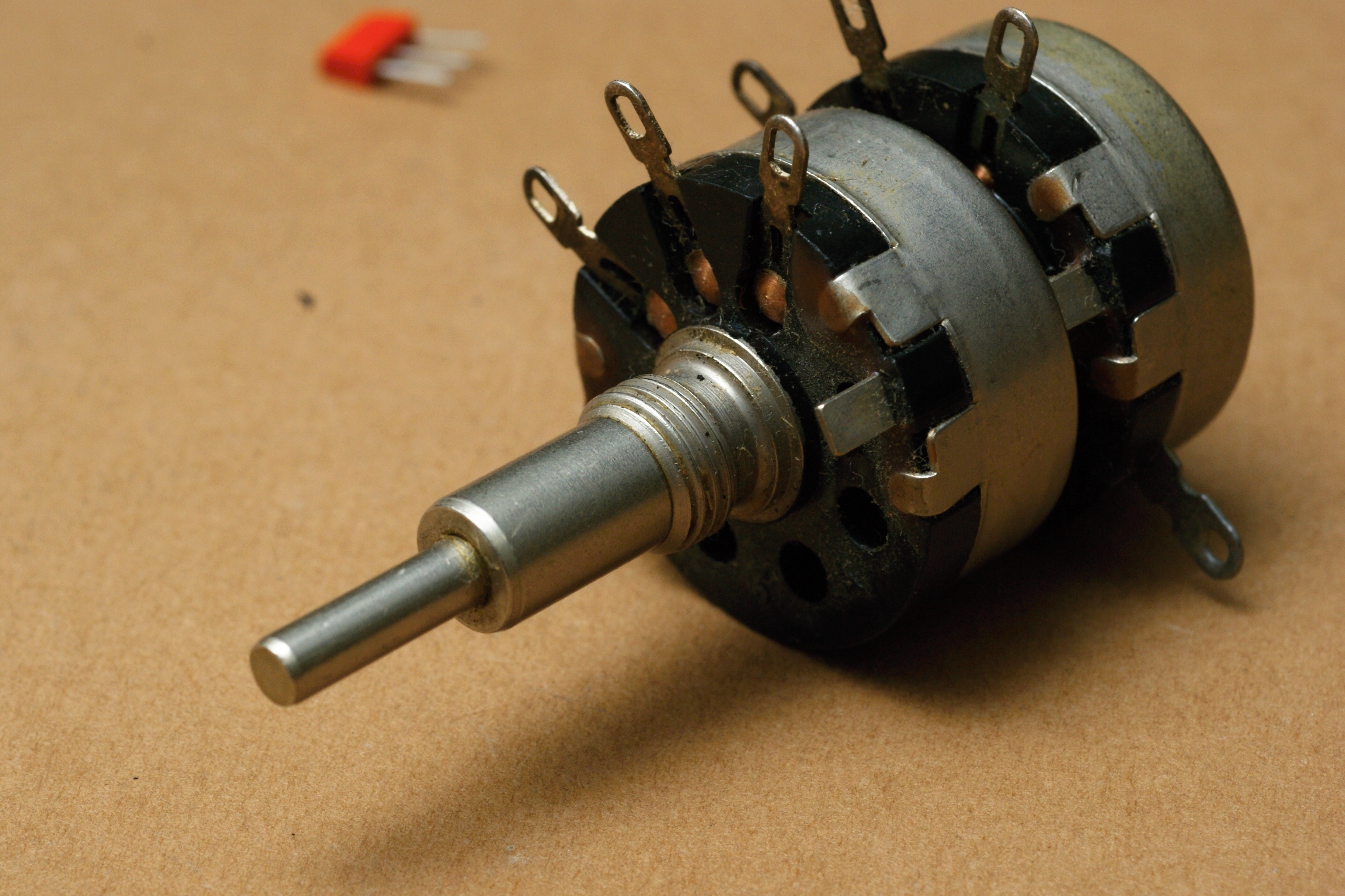 Резисторы в спарке были независимы друг от друга, поэтому встречаются достаточно экзотичные сочетания; к примеру, резисторы разной мощности и/или с разной кривой зависимости.