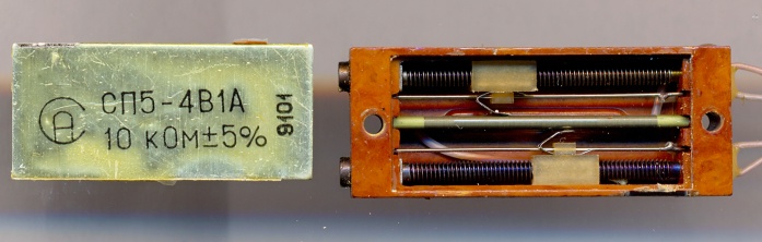 Необычный многоборотный проволочный резистор, который представляет собой два независимых механизма от СП5-1, размещенных в одном корпусе.