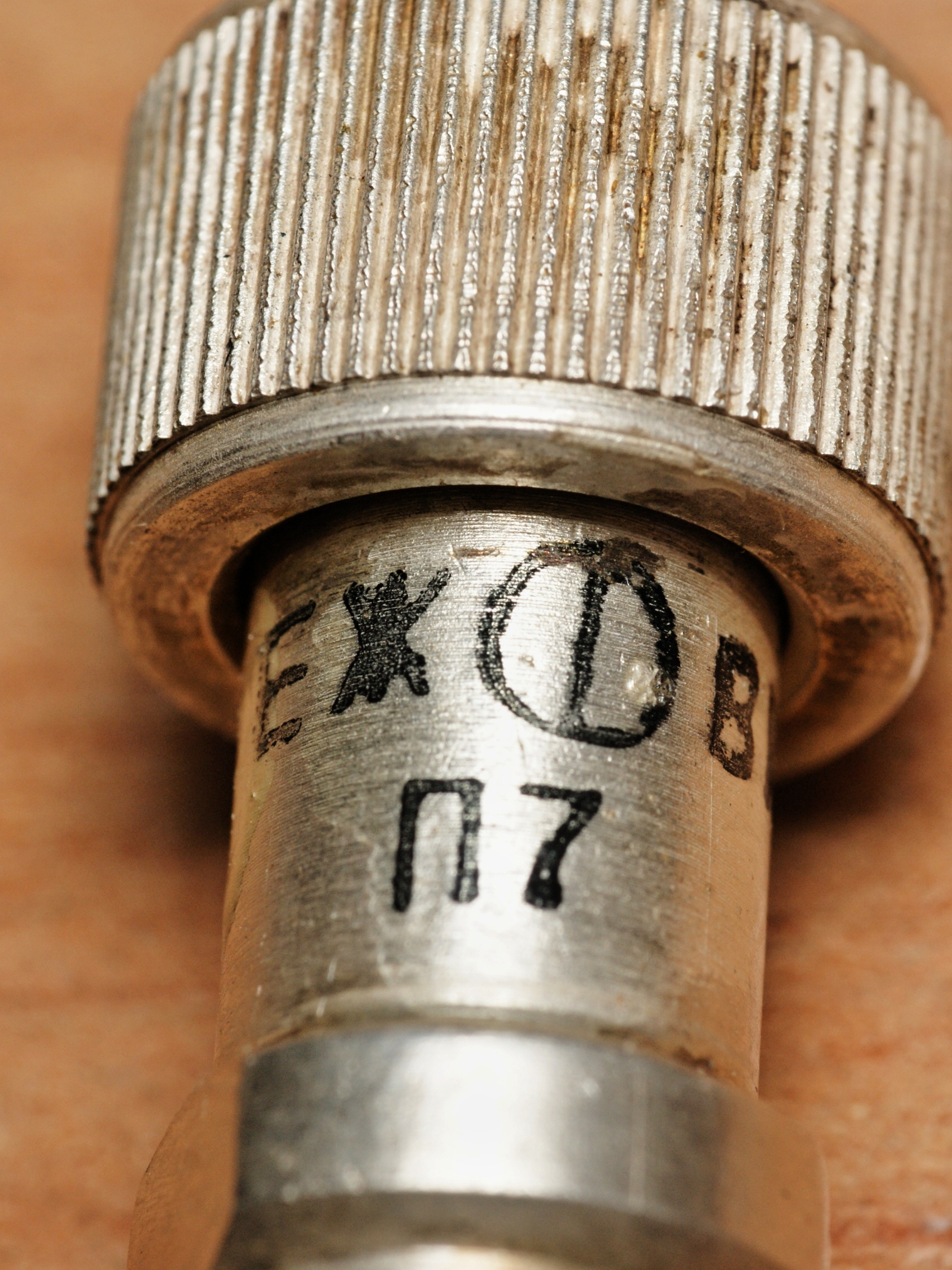 Старый высокочастотный разъём (по ЕЖ3.645.025ТУ), ответная часть к ГП-РК-19. Буквы "ВК" вероятно означают (В)илка (К)абельная, "РК-19" - марку кабеля (ныне ему примерно соответствует РК-50-2-13).