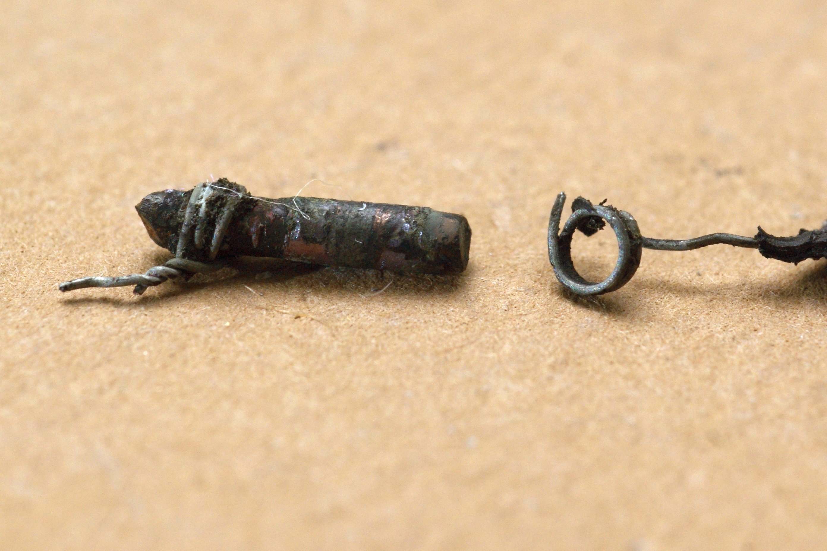 Внутри у него изумительный колхоз. Кусок медной проволоки, с двумя не слишком аккуратно примотанными усиками. Вот такими были радиодетали "в те времена укромные, теперь почти былинные", и при этом они работали!